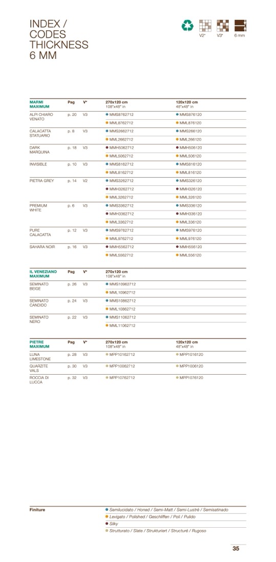 Levigato / Polished / Geschliffen / Poli / Pulido