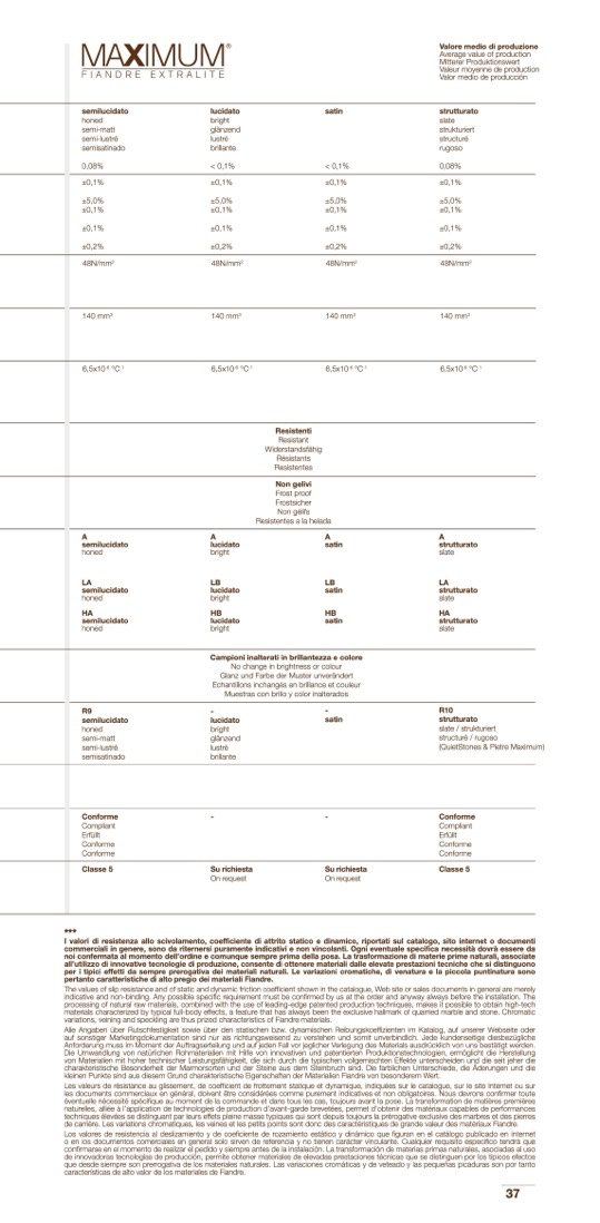 The values of slip resistance and of static and dynamic friction coefficient shown in the catalogue, Web site or sales documents in general are merely