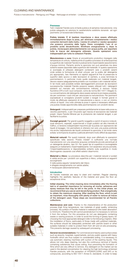 of the detergent used. These steps are recommended for all Fiandre