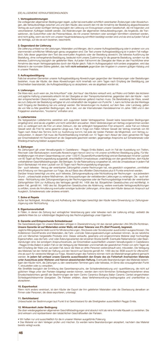Die Garantieleistungen für unsere Materialien erfolgen in Übereinstimmung mit den derzeit geltenden UNI-DIN-EN-Richtlinien.