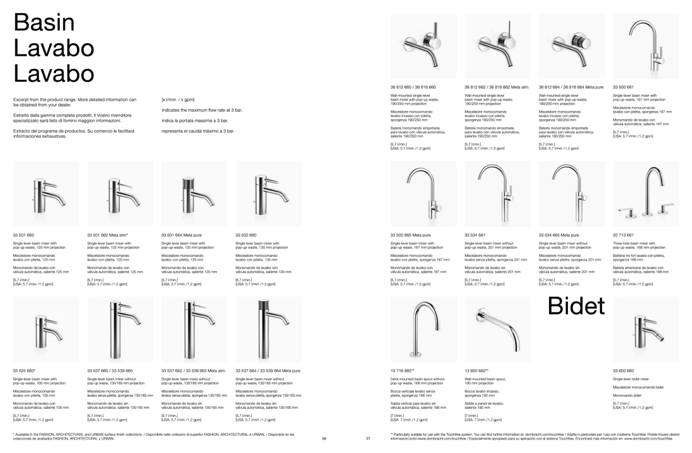 ** Particularly suitable for use with the Touchfree system. You can find further information at: dornbracht.com/touchfree / Adatta in particolare per l’uso con il sistema Touchfree. Potete trovare ulteriori
