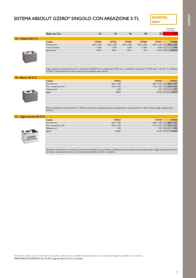 DISPONIBILITÀ ELEMENTI: Dn 12-20 1/5 gg lavorativi, Dn 25 su richiesta