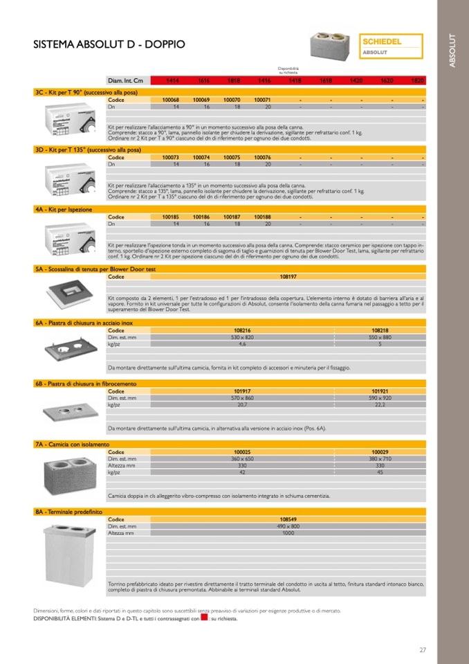 DISPONIBILITÀ ELEMENTI: Sistema D e D-TL e tutti i contrassegnati con