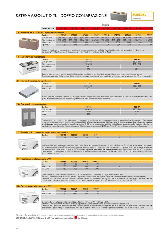 Ordinare nr 2 pacchetti per allacciamento ciascuno del dn di riferimento per ognuno dei due condotti. Es. per sistema Absolut 14TL18: