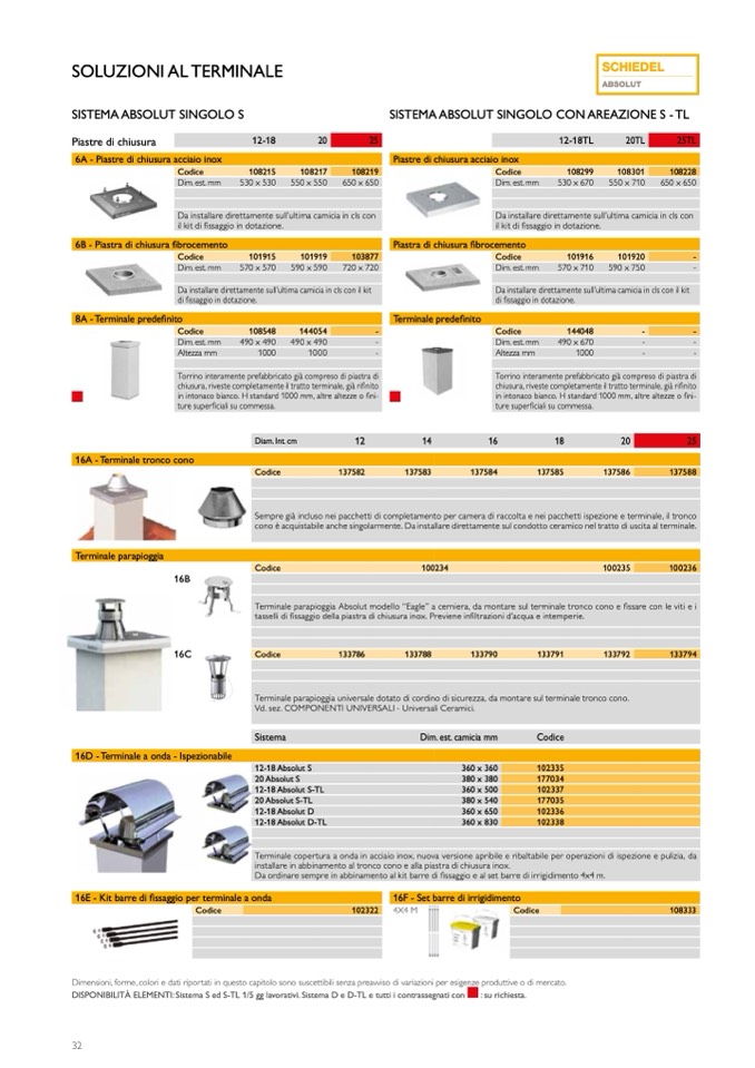 DISPONIBILITÀ ELEMENTI: Sistema S ed S-TL 1/5 gg lavorativi. Sistema D e D-TL e tutti i contrassegnati con