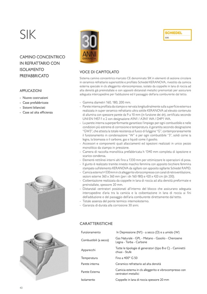 Sistema camino concentrico marcato CE denominato SIK in elementi di sezione circolare