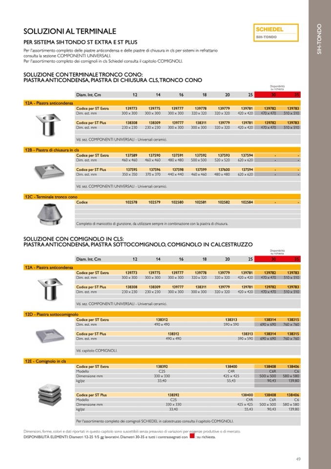 Per l'assortimento completo dei comignoli in cls Schiedel consulta il capitolo COMIGNOLI.