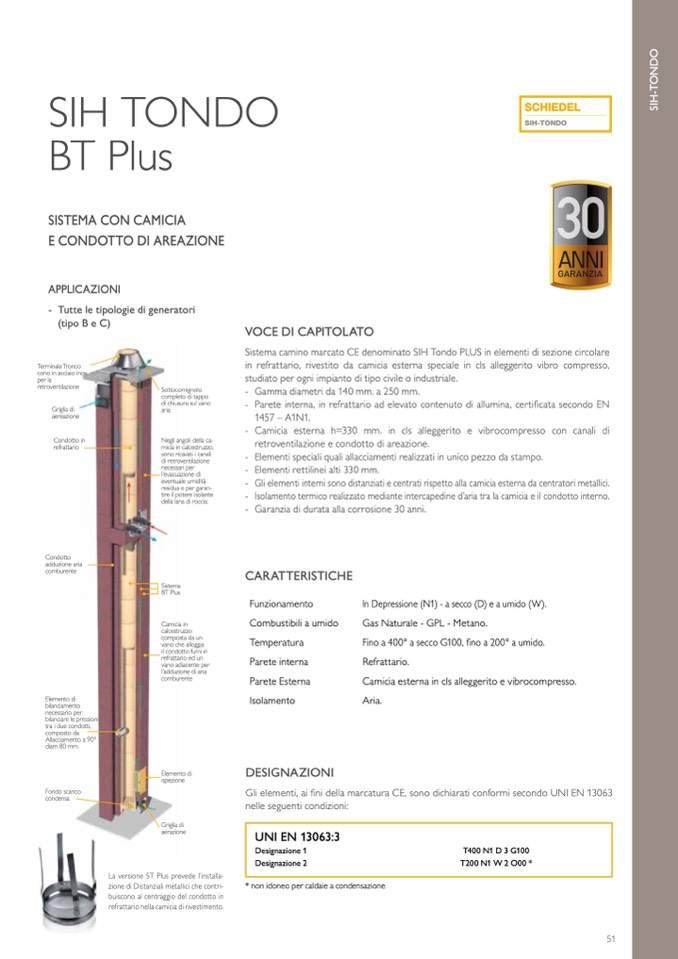 Sistema camino marcato CE denominato SIH Tondo PLUS in elementi di sezione circolare