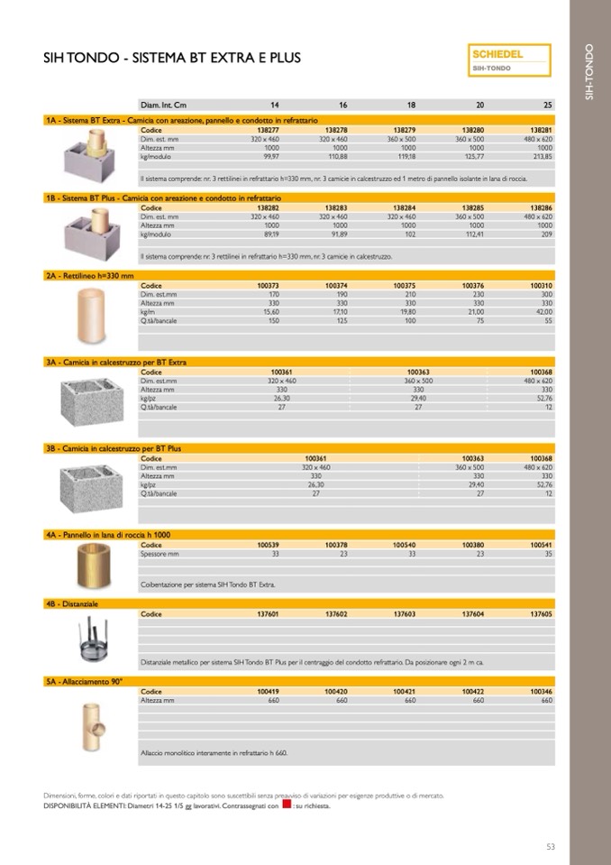 1A - Sistema BT Extra - Camicia con areazione, pannello e condotto in refrattario