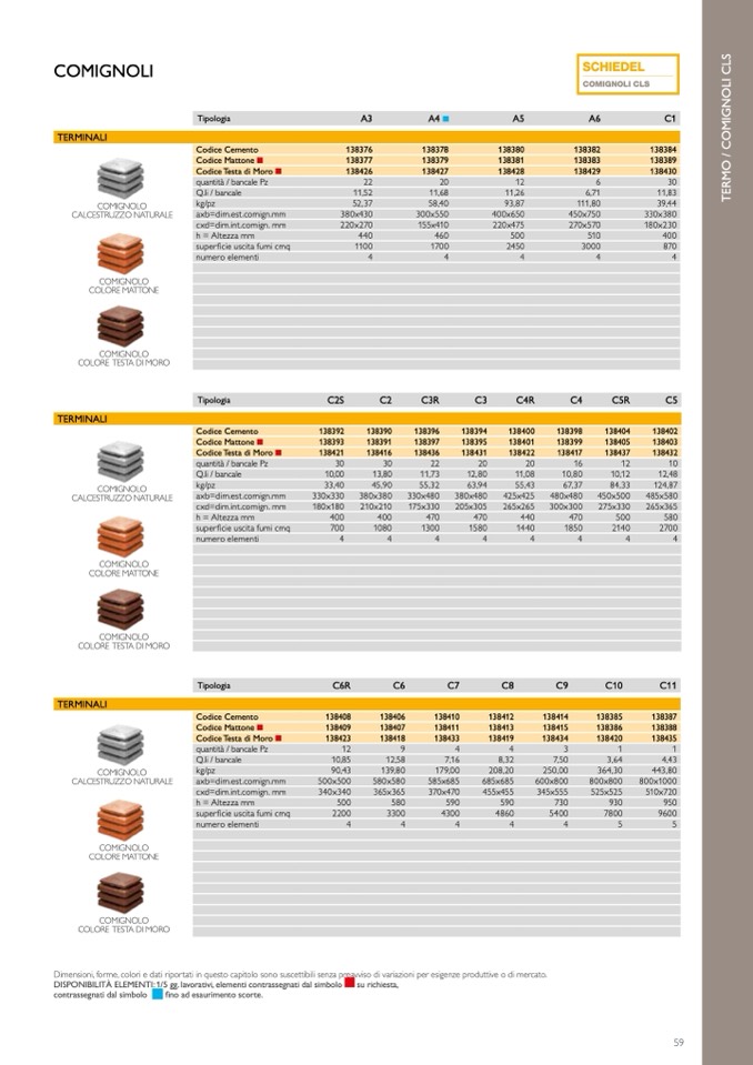 DISPONIBILITÀ ELEMENTI: 1/5 gg. lavorativi, elementi contrassegnati dal simbolo su richiesta,