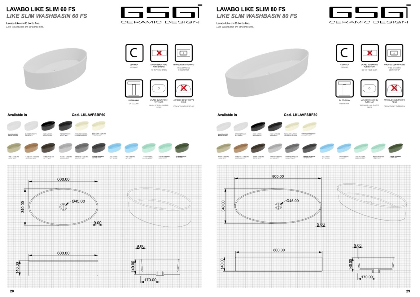Lavabo Like cm 80 bordo fino.