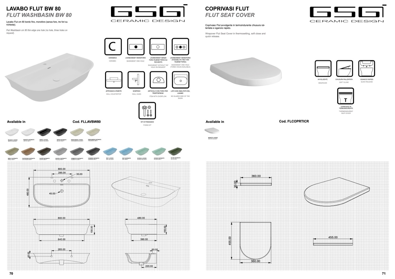Lavabo Flut cm 80 bordo fino, monoforo (senza foro, tre fori su
