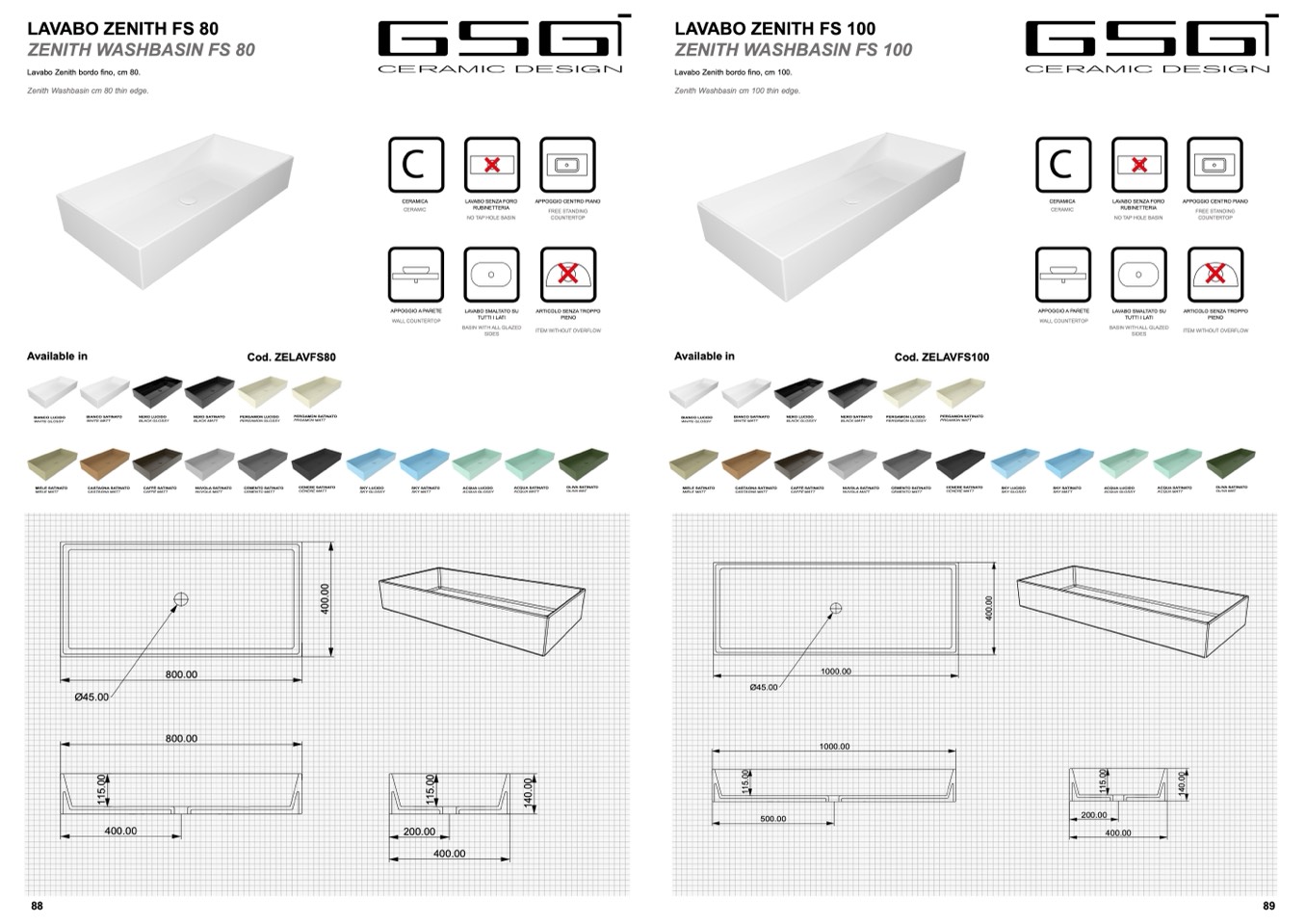 Zenith Washbasin cm 80 thin edge.