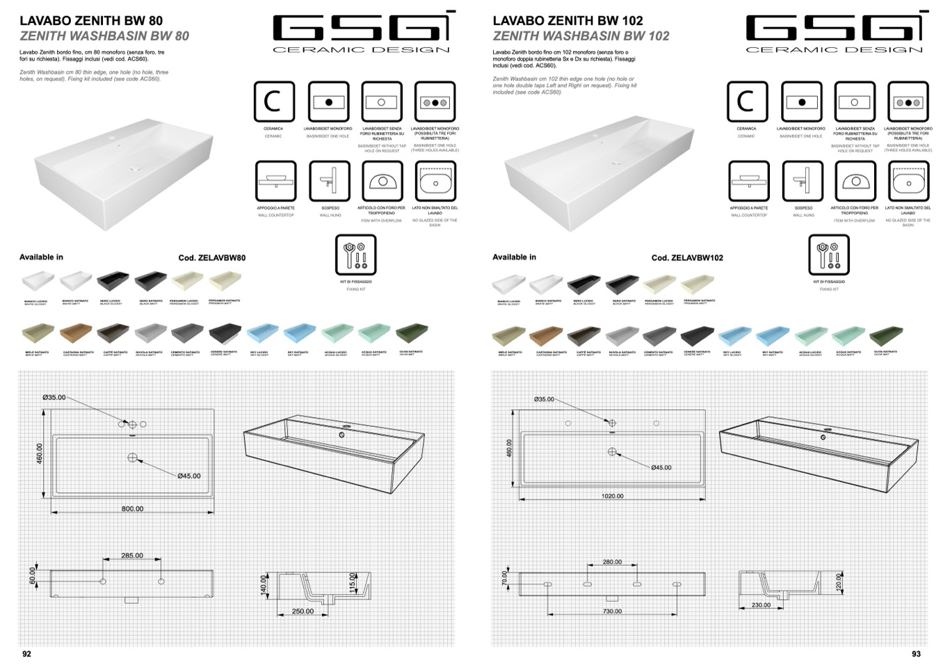 monoforo doppia rubinetteria Sx e Dx su richiesta). Fissaggi