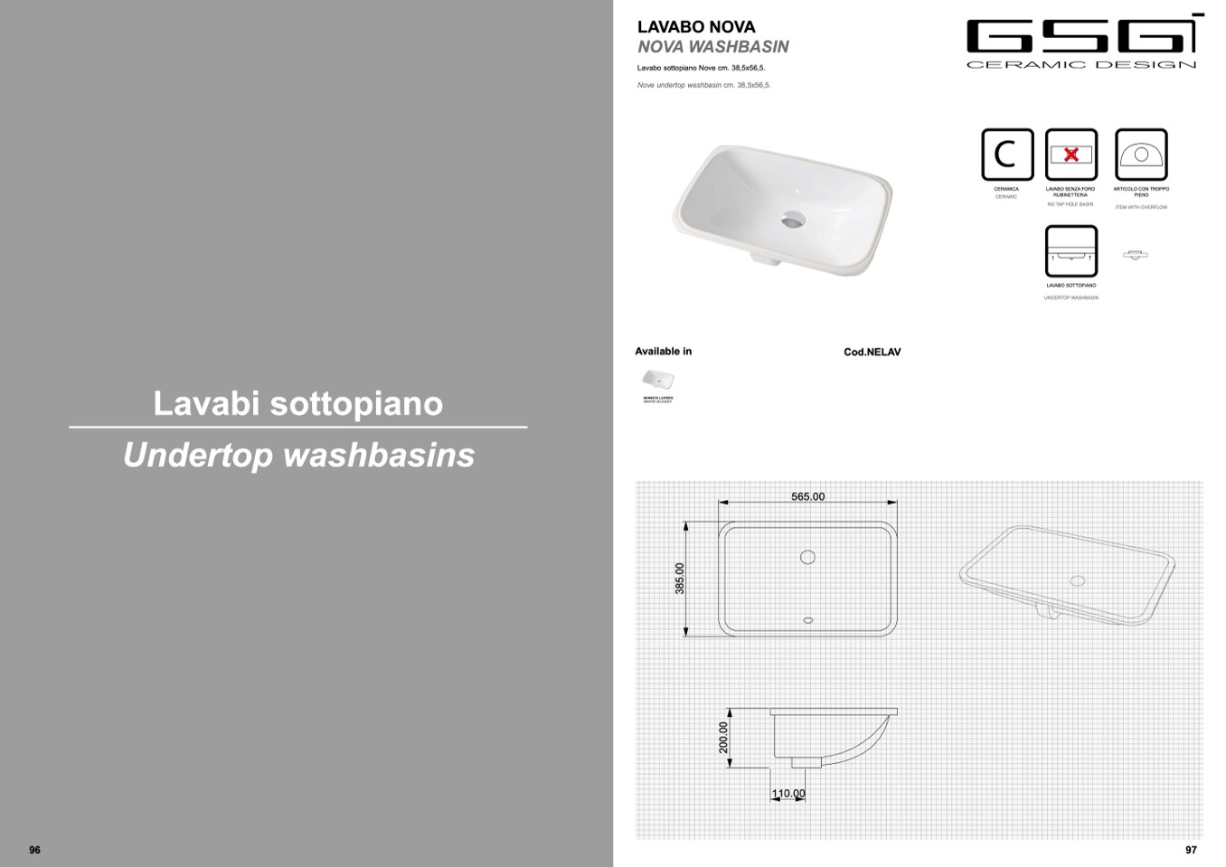 Lavabo sottopiano Nove cm. 38,5x56,5.