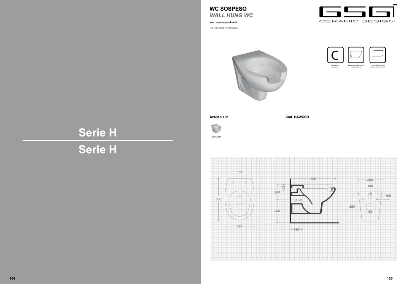 Wc wall-hung for handicap.