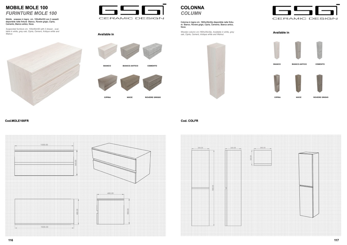 disponibile nelle finiture Bianco, Rovere grigio, Cipria,