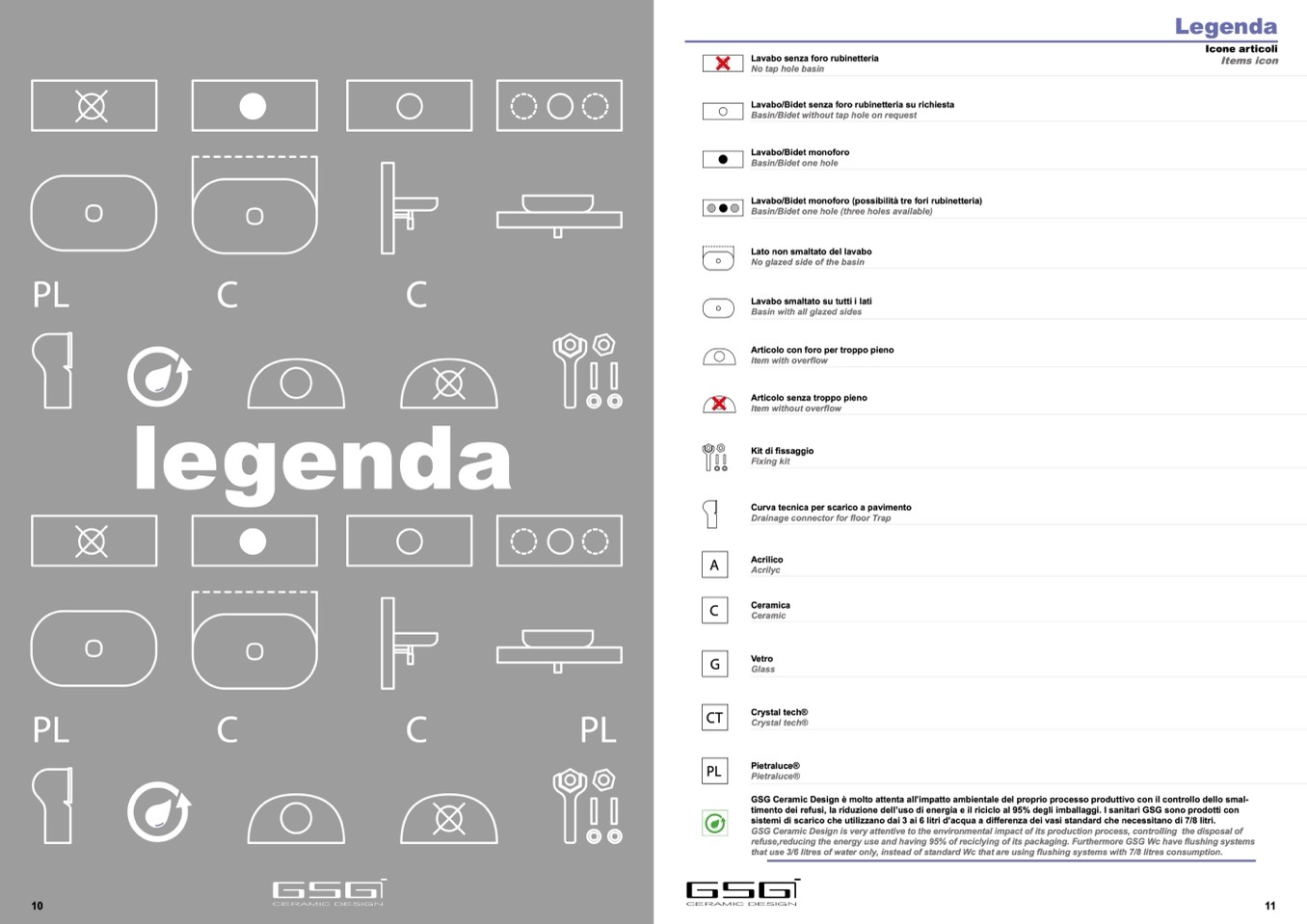timento dei refusi, la riduzione dell’uso di energia e il riciclo al 95% degli imballaggi. I sanitari GSG sono prodotti con