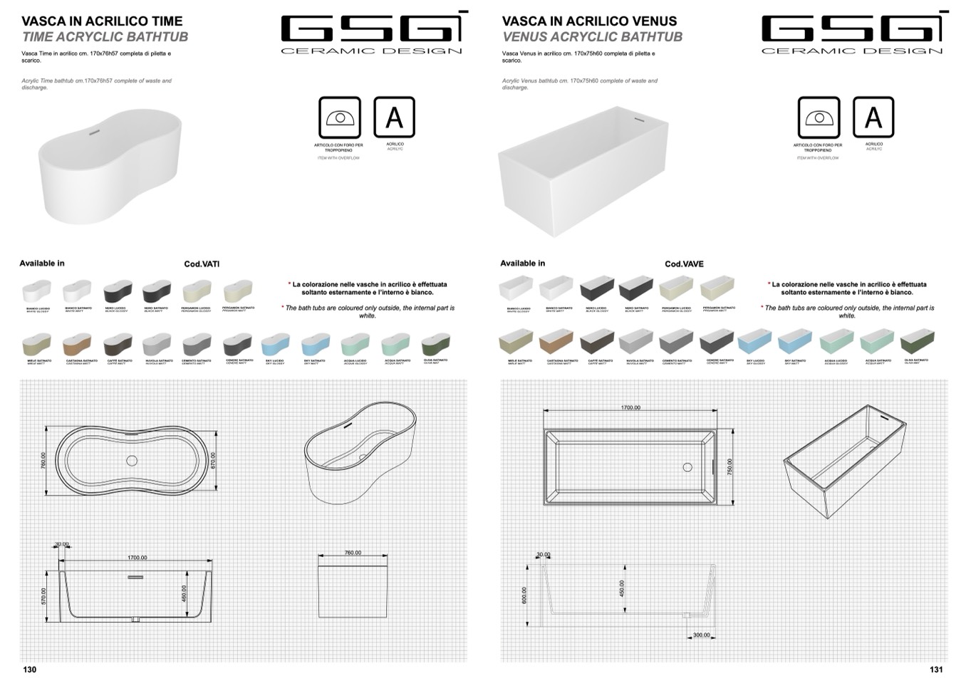 * La colorazione nelle vasche in acrilico è effettuata