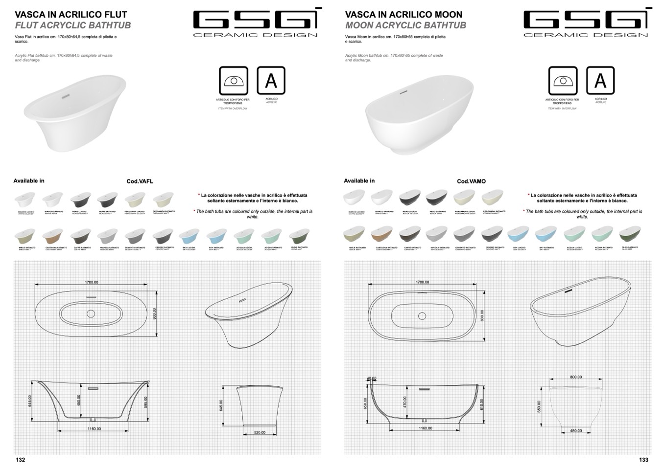 * La colorazione nelle vasche in acrilico è effettuata