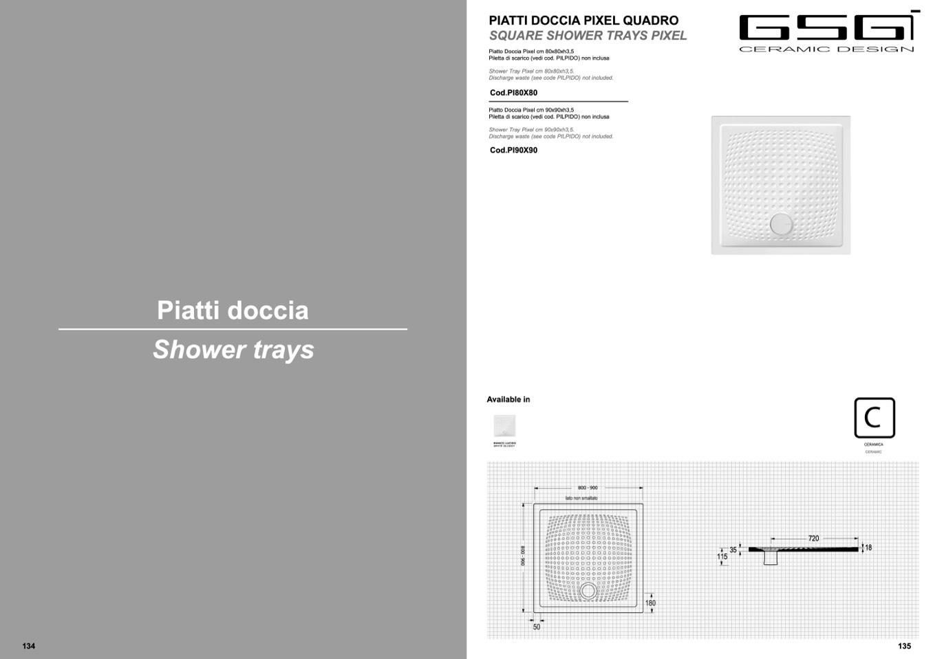 Piatto Doccia Pixel cm 80x80xh3,5