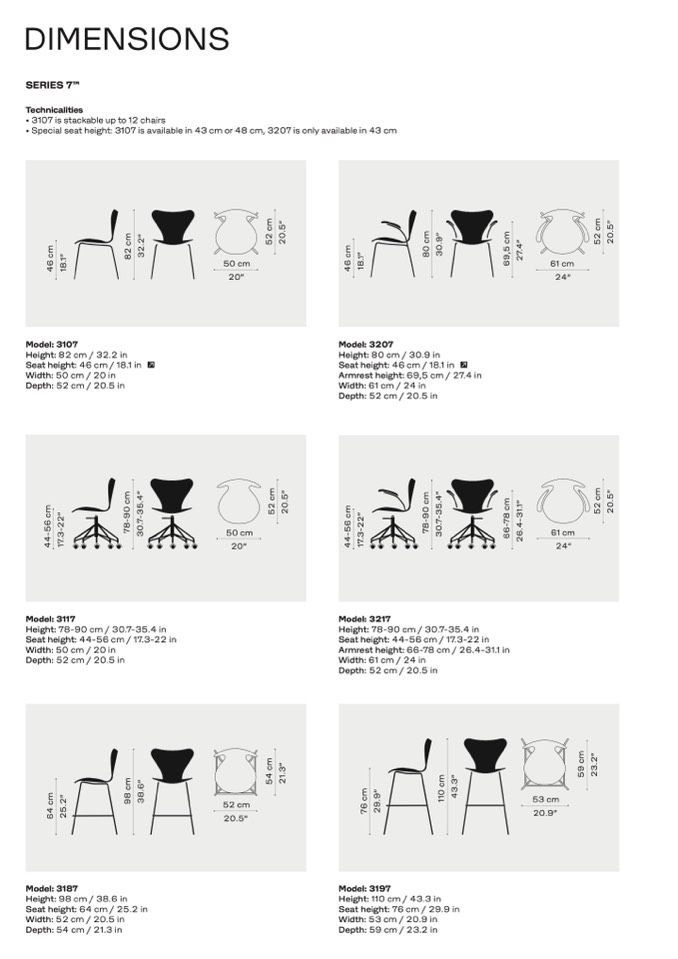 • Special seat height: 3107 is available in 43 cm or 48 cm, 3207 is only available in 43 cm