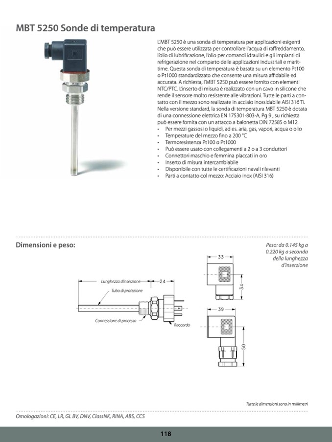 Nella versione standard, la sonda di temperatura MBT 5250 è dotata