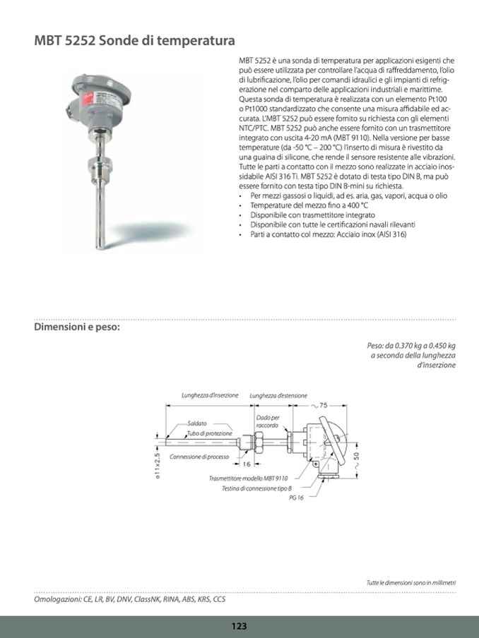 NTC/PTC. MBT 5252 può anche essere fornito con un trasmettitore