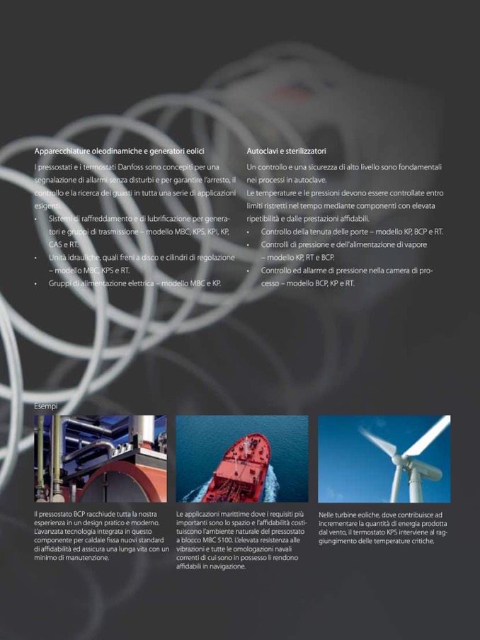 I pressostati e i termostati Danfoss sono concepiti per una