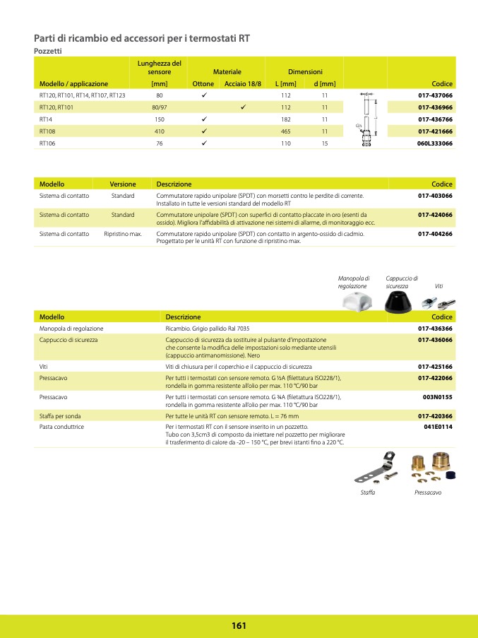 Per i termostati RT con il sensore inserito in un pozzetto.