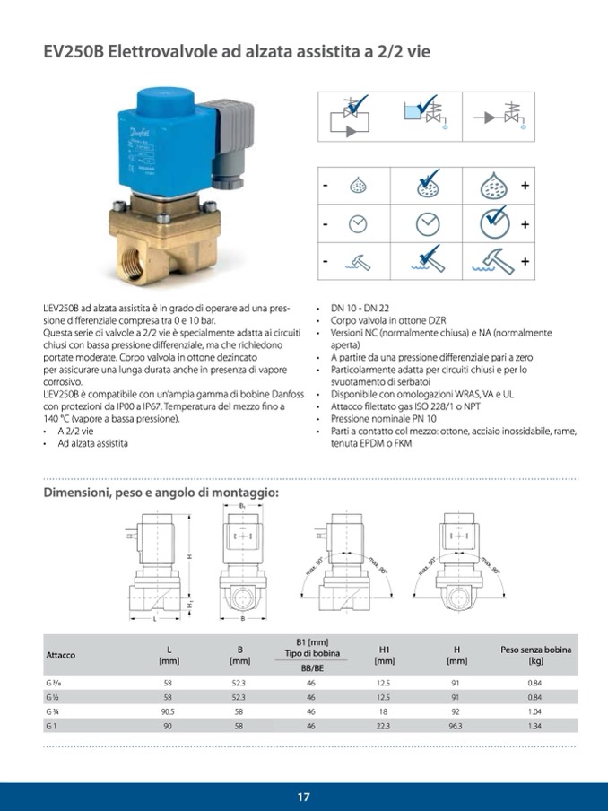 L’EV250B è compatibile con un’ampia gamma di bobine Danfoss