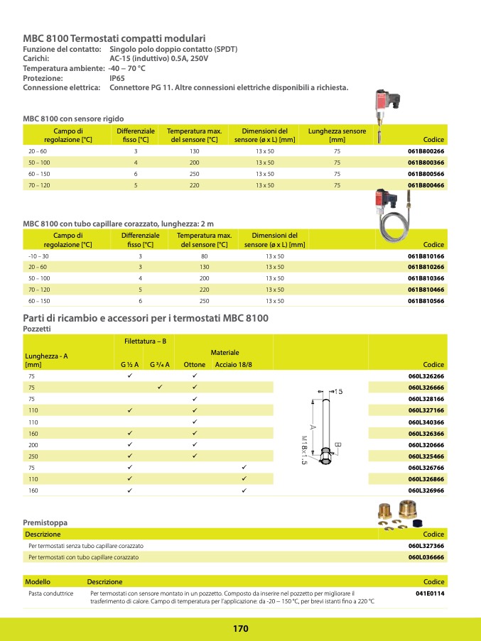 Per termostati con sensore montato in un pozzetto. Composto da inserire nel pozzetto per migliorare il