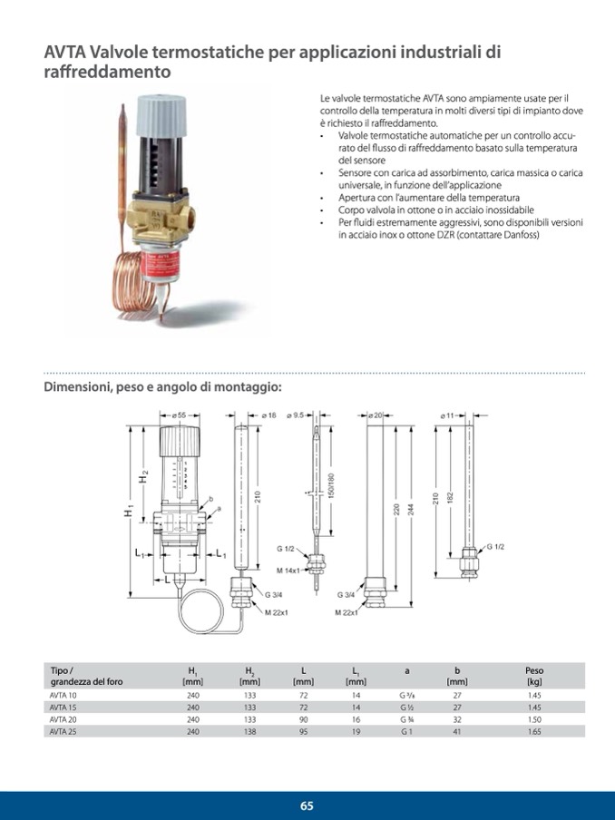 Le valvole termostatiche AVTA sono ampiamente usate per il