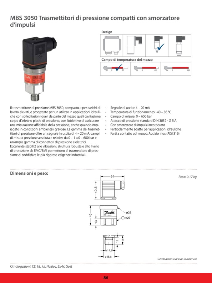 Il trasmettitore di pressione MBS 3050, compatto e per carichi di •