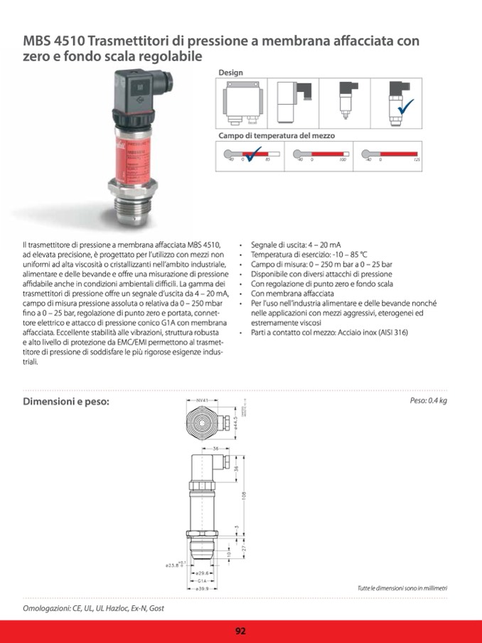 trasmettitori di pressione offre un segnale d’uscita da 4 – 20 mA, •
