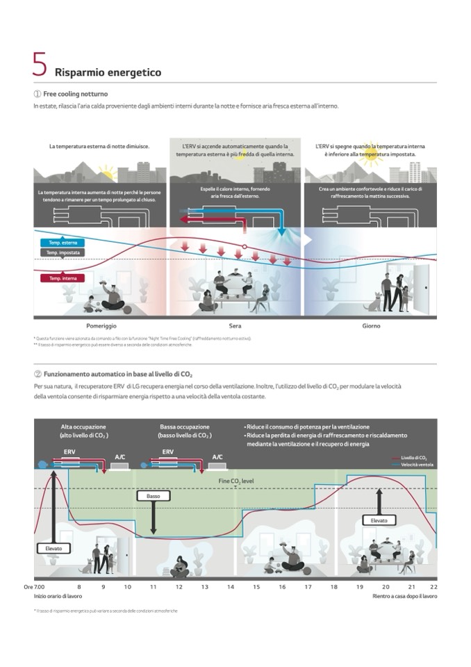 Per sua natura, il recuperatore ERV di LG recupera energia nel corso della ventilazione. Inoltre, l'utilizzo del livello di CO