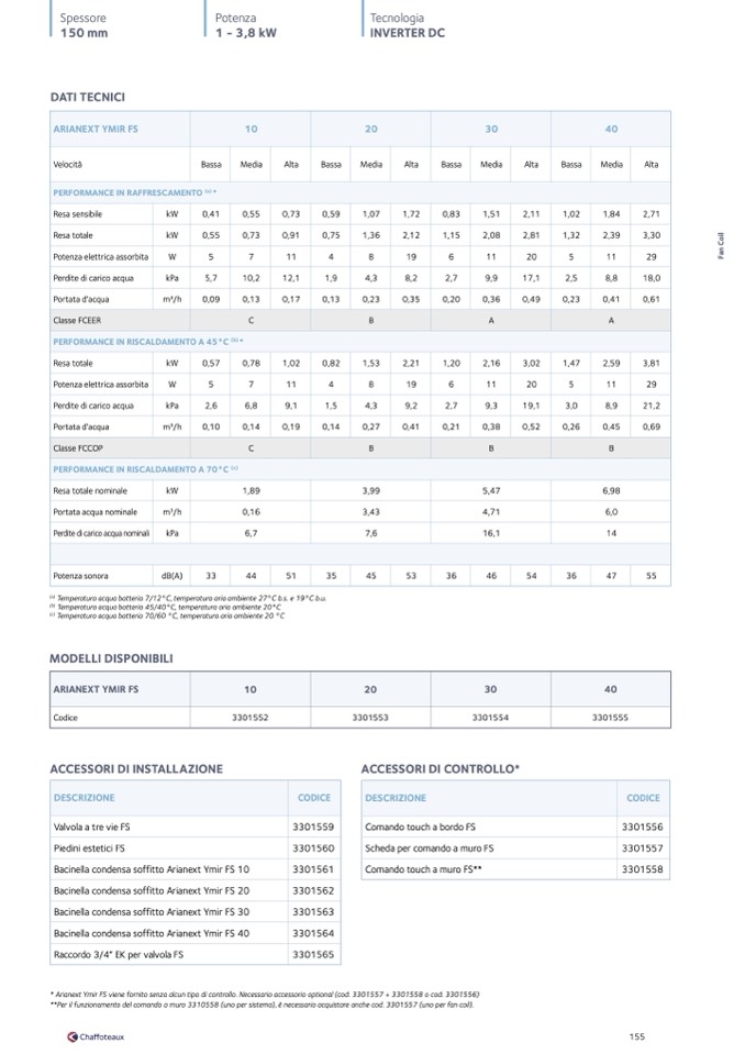 * Arianext Ymir FS viene fornito senza alcun tipo di controllo. Necessario accessorio optional (cod. 3301557 + 3301558 o cod. 3301556)