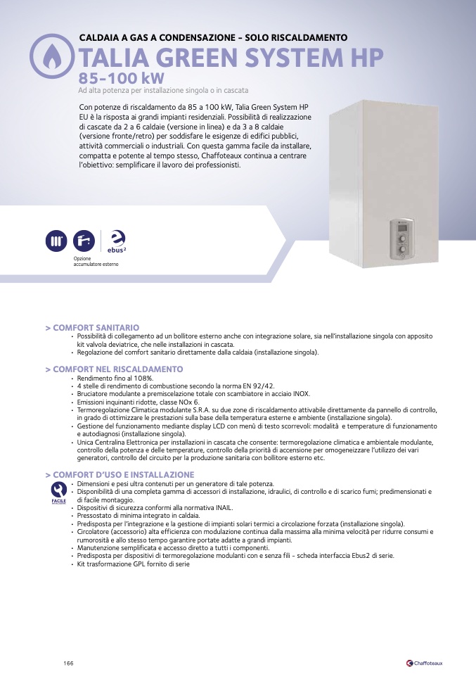 • Unica Centralina Elettronica per installazioni in cascata che consente: termoregolazione climatica e ambientale modulante,