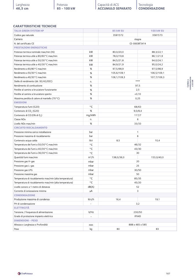 Temperatura dei fumi a 40/30°C max/min