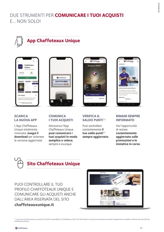 I punti accumulati saranno convertiti in EuroPunti spendibili con Chaffoteaux Card. Per informazioni sul tasso di conversione consulta il regolamento completo sull’area riservata del sito