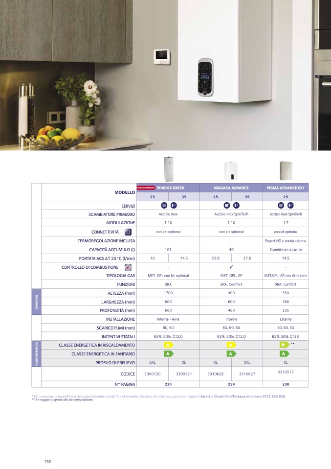 * Per conoscere le modalità e le tipologie di incentivi statali fare riferimento alla parte introduttiva, oppure conttatare il Servizio Clienti Chaffoteaux al numero 0732 633 529