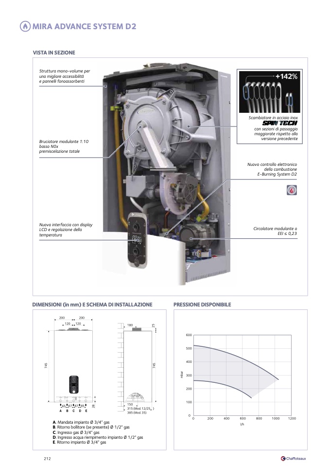 D. Ingresso acqua riempimento impianto Ø 1/2” gas