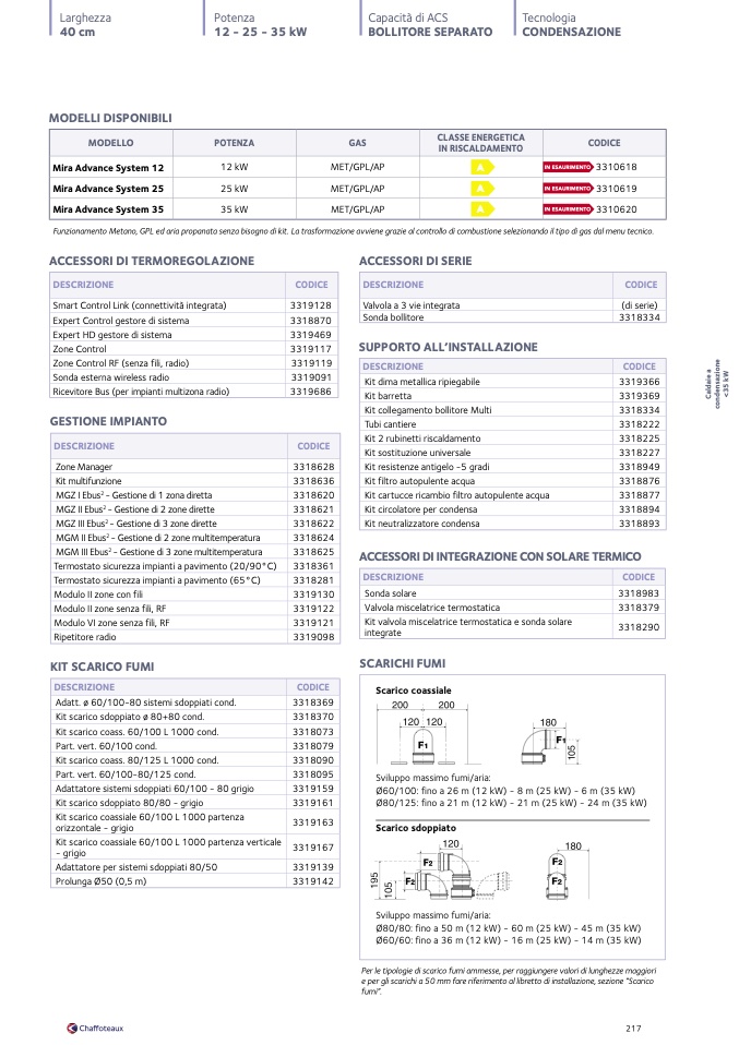 Ø80/125: fino a 21 m (12 kW) - 21 m (25 kW) - 24 m (35 kW)