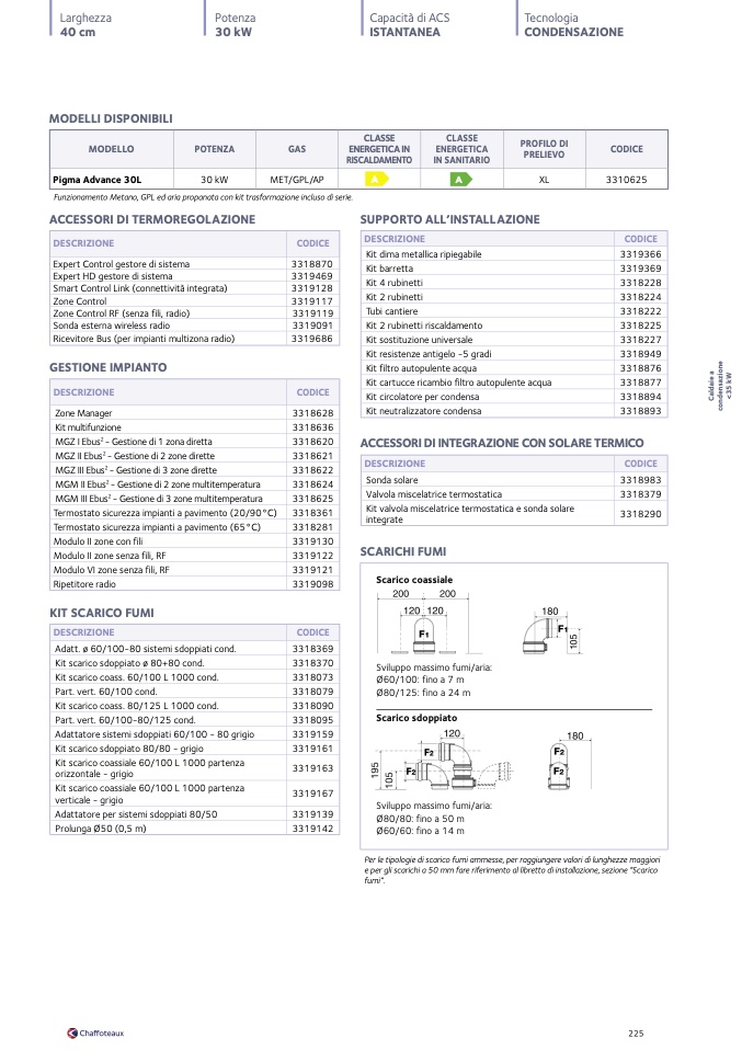 Per le tipologie di scarico fumi ammesse, per raggiungere valori di lunghezze maggiori