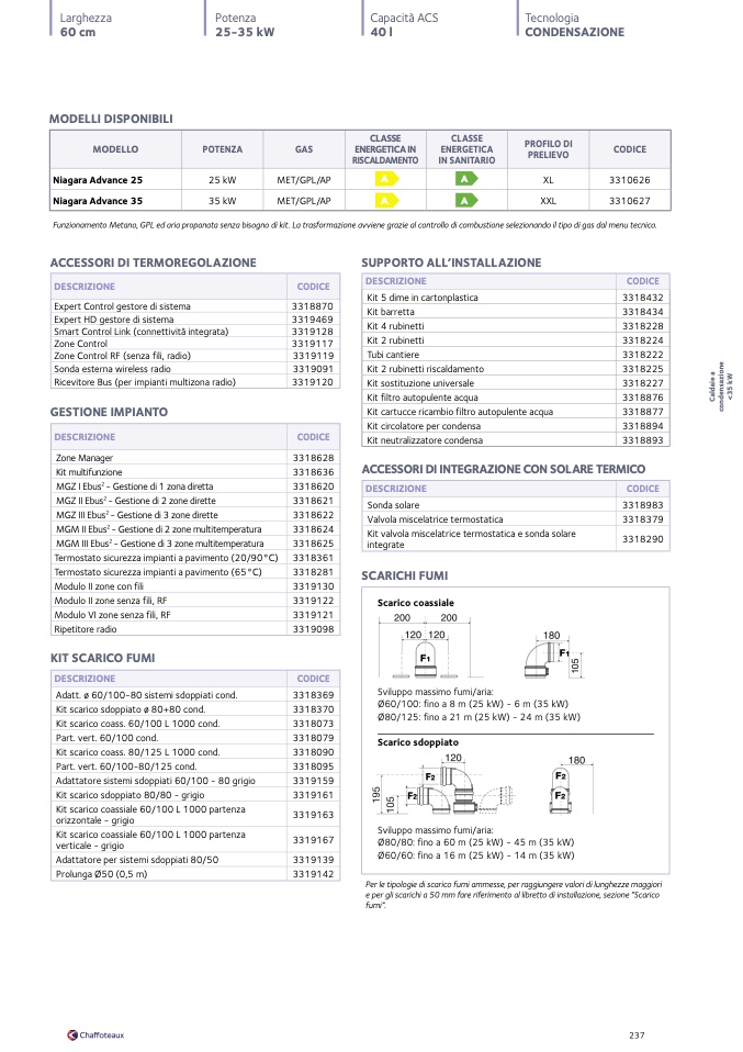 Ø80/125: fino a 21 m (25 kW) - 24 m (35 kW)