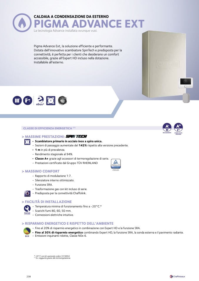 • Fino al 30% di risparmio energetico combinando Expert HD, la funzione SRA, la sonda esterna e il pavimento radiante.