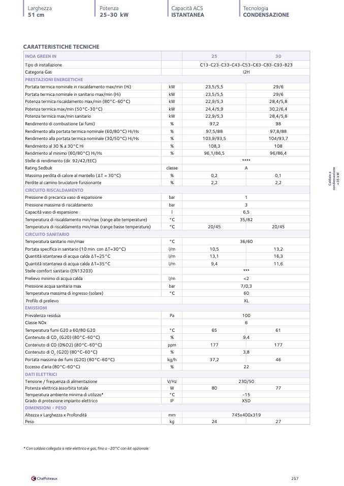 * Con caldaia collegata a rete elettrica e gas, fino a -20°C con kit opzionale.