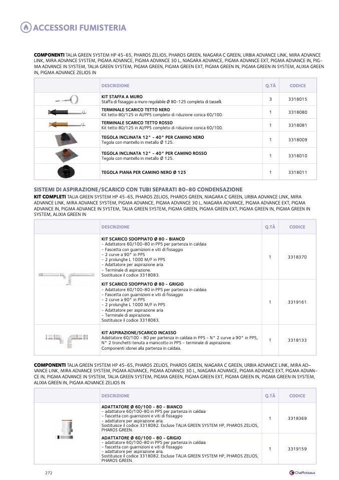 COMPONENTI TALIA GREEN SYSTEM HP 45-65, PHAROS ZELIOS, PHAROS GREEN, NIAGARA C GREEN, URBIA ADVANCE LINK, MIRA ADVANCE