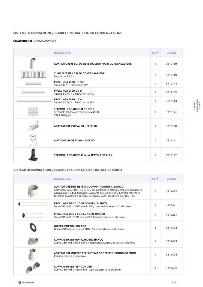SISTEMI DI ASPIRAZIONE/SCARICO INTUBATI 50-50 CONDENSAZIONE