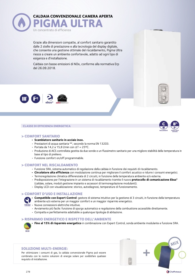 Per ottimizzare i consumi di gas, la caldaia convenzionale Pigma pu